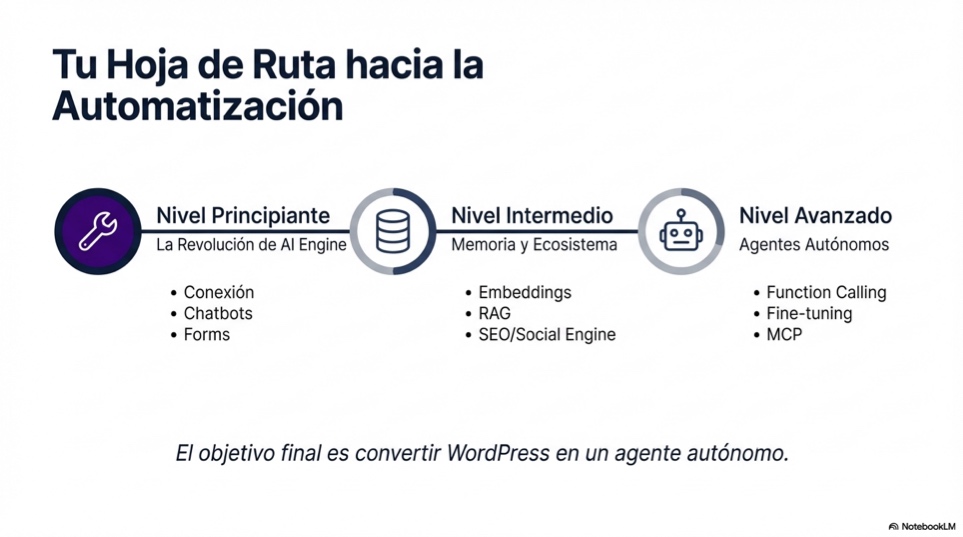 En la segunda parte de esta serie, dejaremos de jugar con chatbots básicos y nos adentraremos en el nivel intermedio: enseñaremos a tu IA todo sobre tu negocio mediante Embeddings y conectaremos estos cuatro plugins para crear una máquina de automatización perfecta. Prepárate, porque tu WordPress está a punto de cobrar vida.